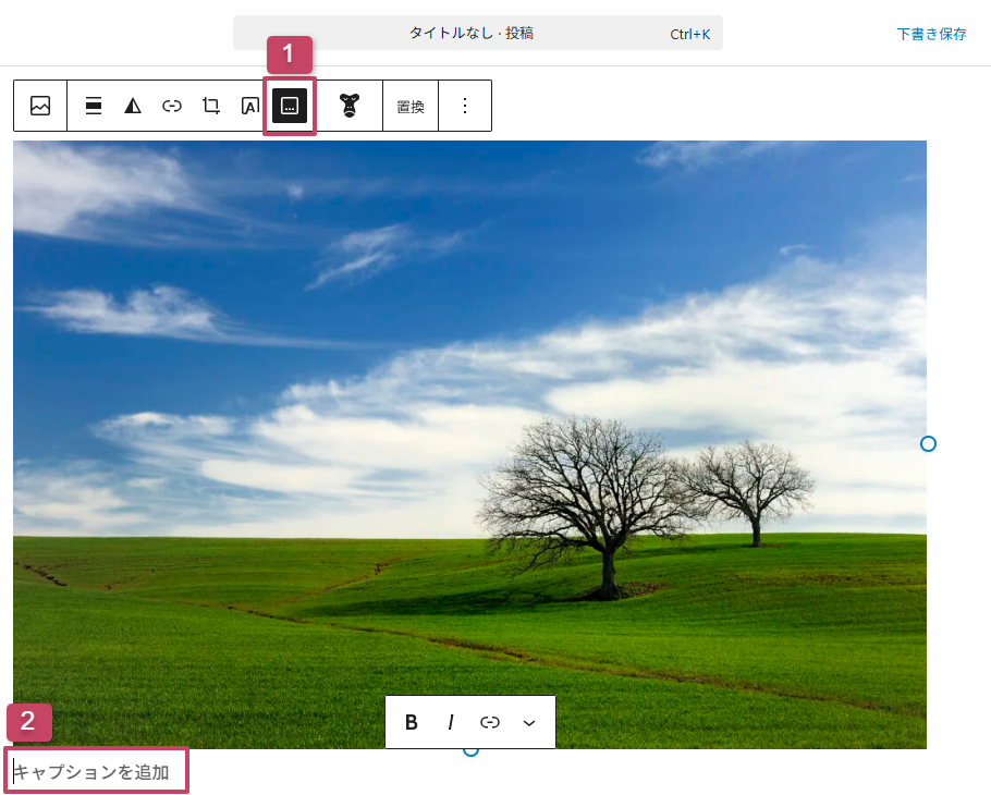 - 画像を選択し、「キャプションを追加」を選択します