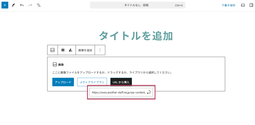 外部サイトにある画像ファイルのURLを指定して挿入する方法です。画像は自分のWordPressに保存されず、相手サーバーから直接読み込まれます。そのため、画像が削除されたりURLが変わると表示されなくなる可能性があります。