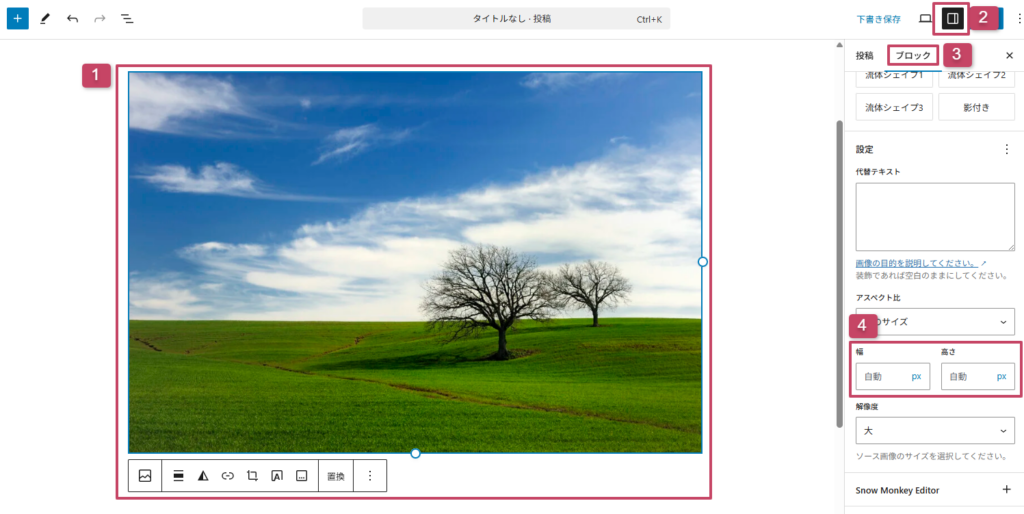 WordPressの「画像ブロック」を使えば、簡単に記事内に画像を挿入でき、サイズや配置も自由に変更可能です。