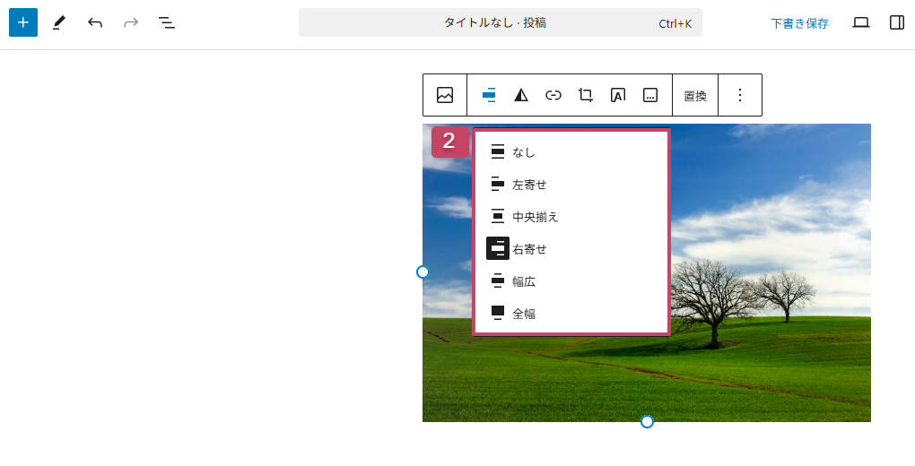 文章に対して画像をどの位置に表示するかを選択できます。